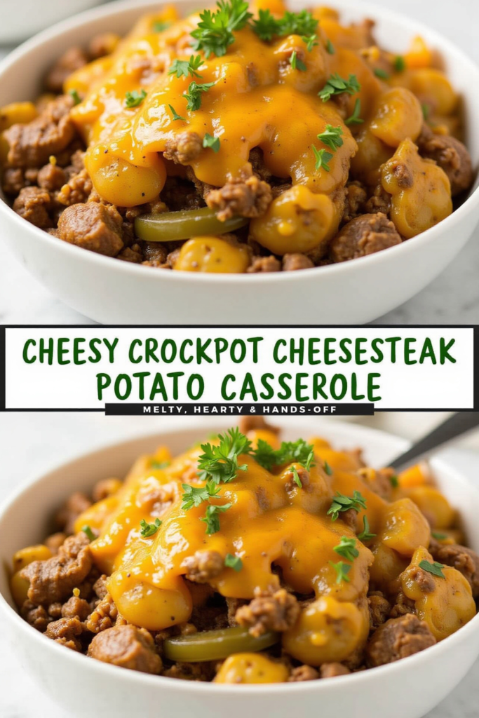 Cheesy Crockpot Cheesesteak Potato Casserole (Recap)