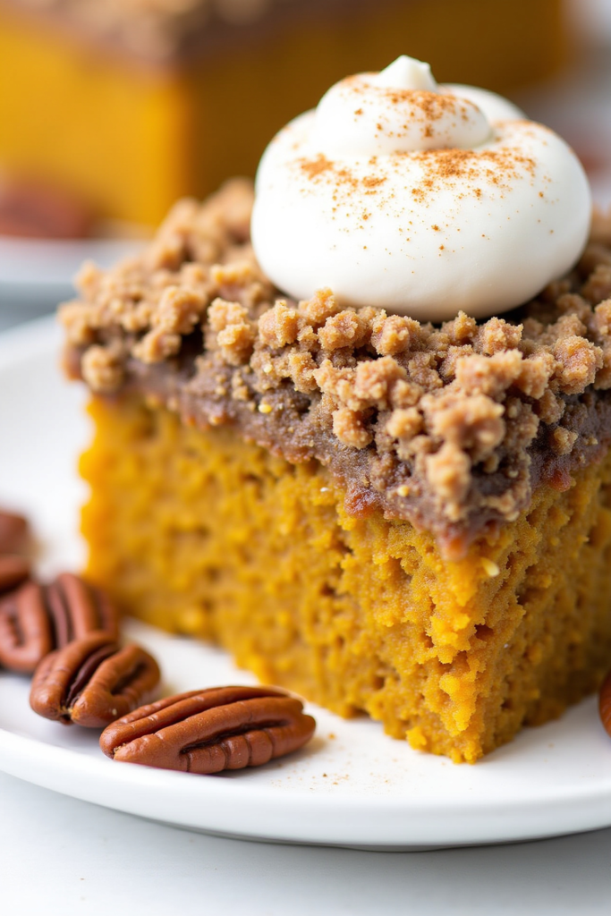 A slice of easy pumpkin dump cake is phenomenal on its own, but you can elevate it with a scoop of vanilla ice cream or a dollop of whipped cream. Sprinkle with a pinch of cinnamon or chopped toasted nuts for extra color and crunch. For gatherings, serve straight from the pan—it’s rustic, unfussy, and always a hit.