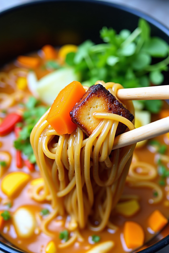 The beauty of Slow Cooker Ramen Tofu Soup lies in how easily you can personalize it. Use your preferred vegetables, swap the tofu for tempeh, and adjust the spices to your taste. The combination of soy sauce, garlic, ginger, and sesame oil creates a deep umami flavor, perfectly complemented by hearty noodles and soft tofu cubes.
