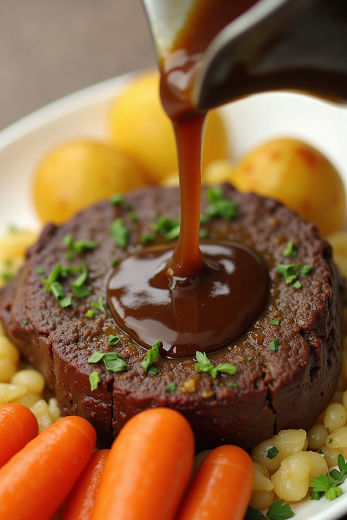 To develop the deepest flavor, a quick sear on the beef (before slow cooking) locks in juices and caramelizes the exterior. As the roast simmers with onions, garlic, carrots, and potatoes, the broth and seasonings meld into a rich sauce. A little flour or cornstarch at the end transforms all those slow-cooked juices into the creamiest, most decadent gravy imaginable.